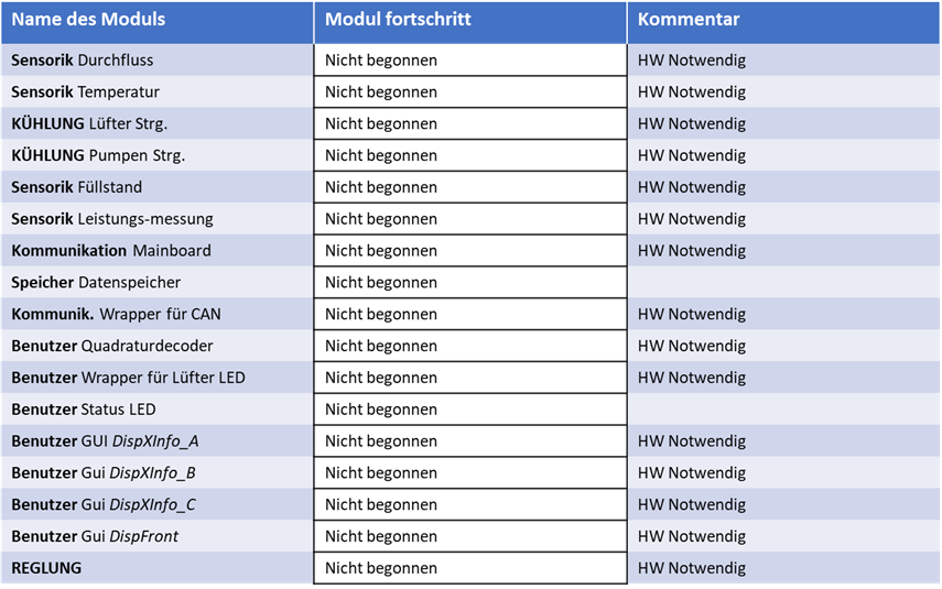 I started the software development as well. So far there is a list of all software modules and ideas how to implement them. – the list Is long – I created a task scheduler that shall handle all the tasks running in background. Sorry for the German list, its meant for internal purposes 😀